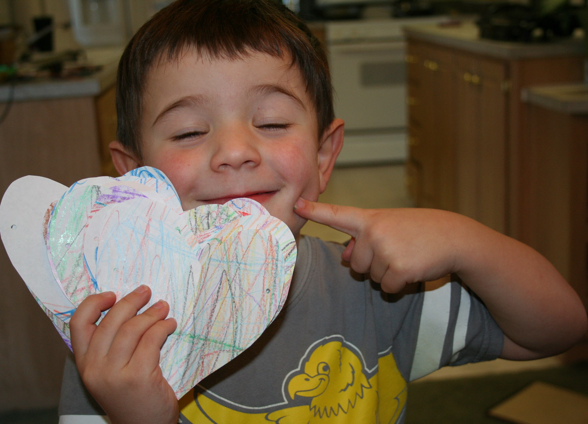 When I went to decorate my mantle for Valentines, I saw a pile of Cooper's pictures, destined for the trash (because if I saved all of his pictures as keepsakes, they'd already need their own room)... I decided I'd try clipping them up and creating a cute heart garland! He loved helping me with it!